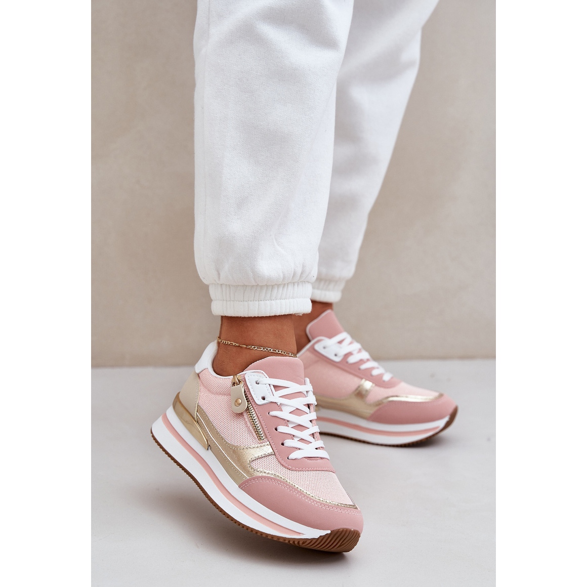 Detaljer: Kvinnors glänsande sportskor på plattformen rosa