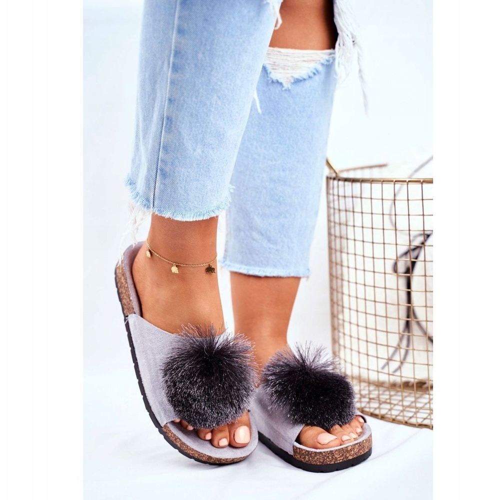 Detaljer: MSMG Kvinnors grå tofflor på korkar med Pompom Galaxo