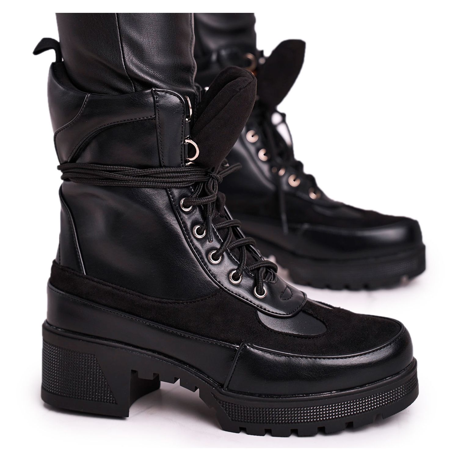 Insidan av stövlarna är lätt isolerad med en skofilt, vilket ger behaglig värme under kallare dagar. Solid snörning ger en perfekt passform till foten, vilket säkerställer stabilitet och komfort att bära. En tjock sula gjord av syntetiskt material i kombination med en blockformad häl med en höjd på 5,5 cm gör dessa stövlar inte bara snygga, utan också extremt bekväma.