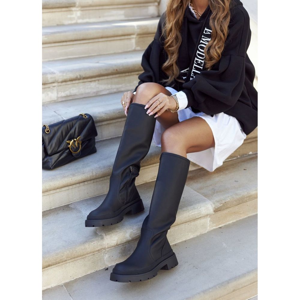 Vi presenterar eleganta och klassiska högkängor för kvinnor från S.Barski, som måste ingå i din kollektion. "Whats Going On"-modellen är en kombination av stil och komfort, perfekt för kalla dagar. Tillverkad av högkvalitativt ekologiskt läder, överdelen som sträcker sig upp till knäet garanterar inte bara ett moderiktigt utseende, utan också tillräckligt skydd mot kylan.