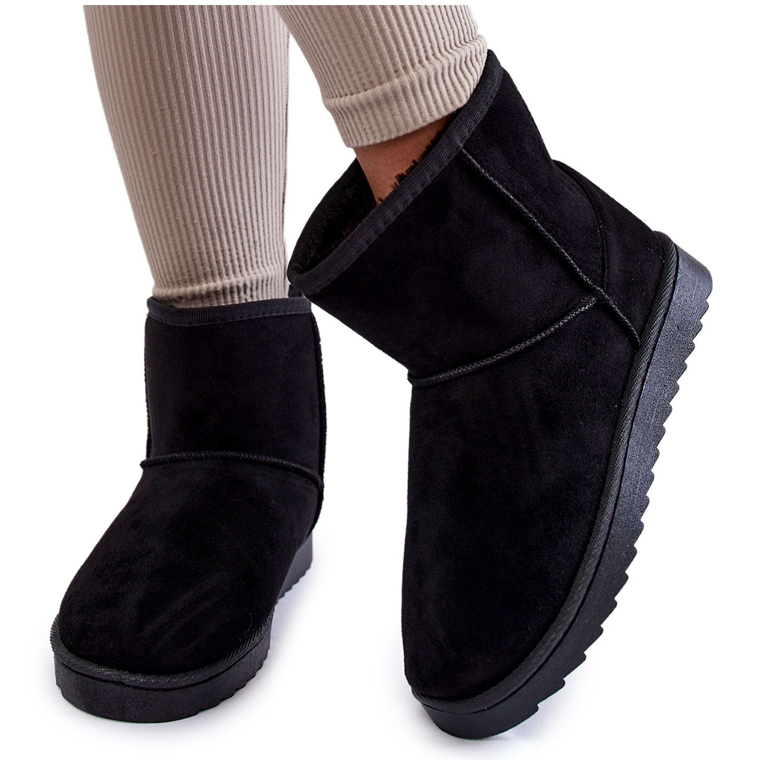 Kvinnors isolerade svarta snöstövlar - en kombination av stil, komfort och värme på kalla dagar. Tillverkad av Eco Suede med subtila sömmar på den övre, presenterar de ett klassiskt, universellt snitt, som du enkelt kan anpassa dig till vinterstyliseringar - från en nedjacka till en lång kappa. Den inre vadderade med tjock ekologisk päls ger trevlig uppvärmning, och den 3 cm höga plattformen insulerar effektivt från den kalla marken, vilket ökar komforten under promenader.