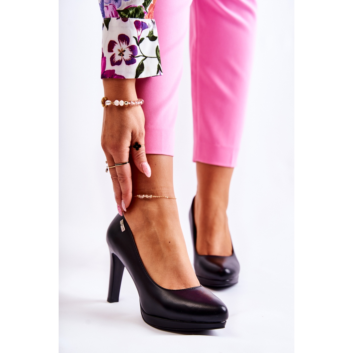 Tillgängliga i en klassisk svart färg, kommer dessa pumps att matcha många stilar, från eleganta klänningar till avslappnade set med jeans. Deras hälhöjd är 9 cm, vilket gör att de optiskt förlänger benen och samtidigt bekväma att bära.