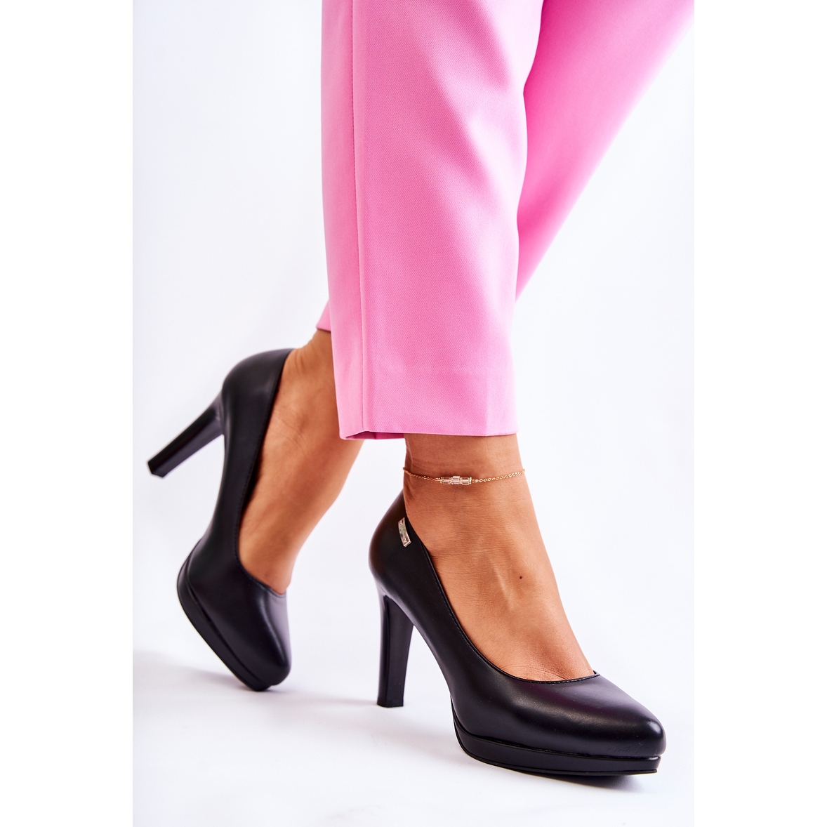 Vi presenterar eleganta plattformspumpar för kvinnor från märket Sergio Leone, som du helt enkelt måste ha i din kollektion! Denna modell kombinerar klassiker med ett modernt förhållningssätt till mode. Ställda på en stabil häl i form av en tunn stolpe, med en delikat plattform, är de ett idealiskt val för viktiga fester och vardagsresor till jobbet.