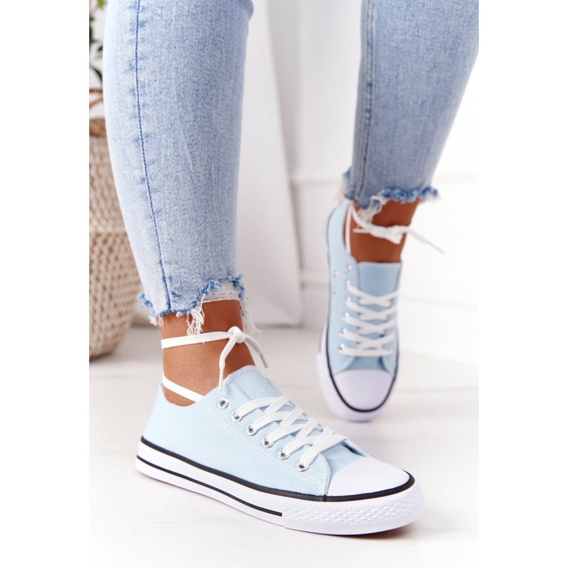 Women's Classic Omerta Blue Sneakers - Universal, lätta och bekväma sneakers i en modern, delikat nyans av blått. Det klassiska snittet med en mjuk överdel och en gummisula fungerar varje dag - för jeans, shorts eller sommarklänningar. Lågprofil, spets -upp -modell, med en rund näsa och en materiell insats för komfort. Den tidlösa designen finns också i andra färger.