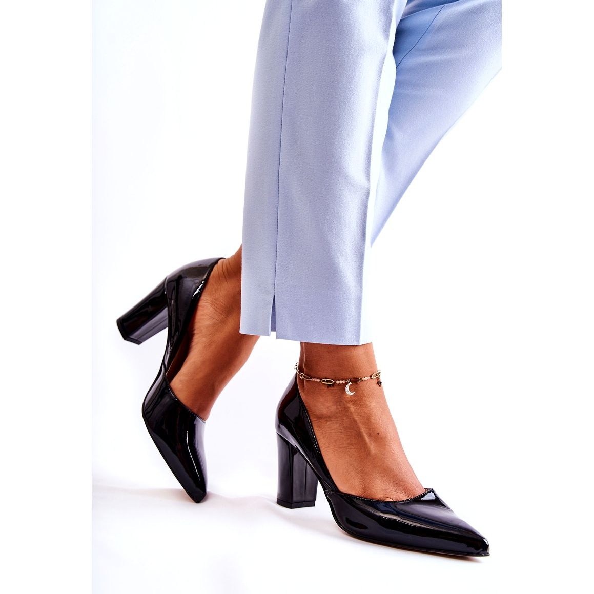 Eleganta, tidlösa pumpar gjorda av naturläder i lackerad finish. En klassisk, smal näsa i en spitz och en stabil klack som ett inlägg (höjd 8 cm) bildar en universell modell som är bra för både officiella fester och under affärsmöten. Den mjuka naturläderinsatsen ger komfort under dagen, och den insatta strukturen gör det lättare att ta på sig snabbt. Produkten finns i tillverkarens ursprungliga ruta.