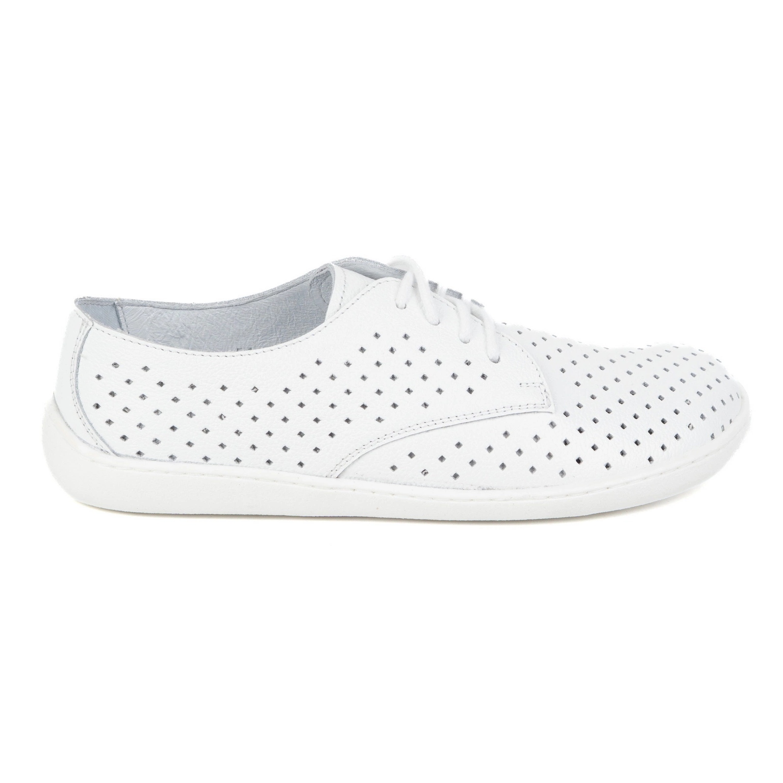 Låset på snören möjliggör individuell passning till foten, som i kombination med användningen av ett läderinsats och skum i fodret ökar komforten i vardagen. I en elegant vit färg kommer dessa skor att vara ett perfekt komplement till många kläder.