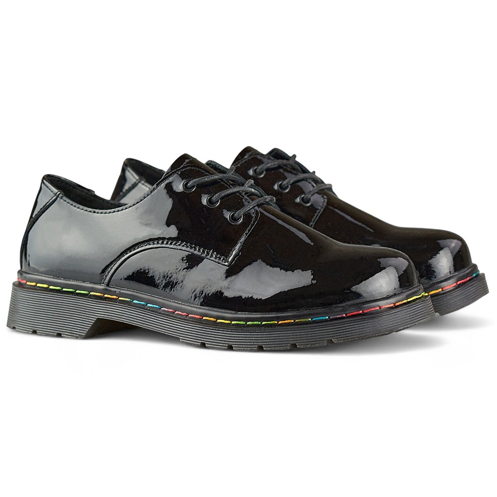 Upptäck elegans och komfort med kvinnors läder lackerade oxfords som kombinerar en klassisk stil med modern stil. Dessa svarta skor är designade för kvinnor och är ett utmärkt val för alla tillfällen - från dagliga utgångar till specialevenemang.