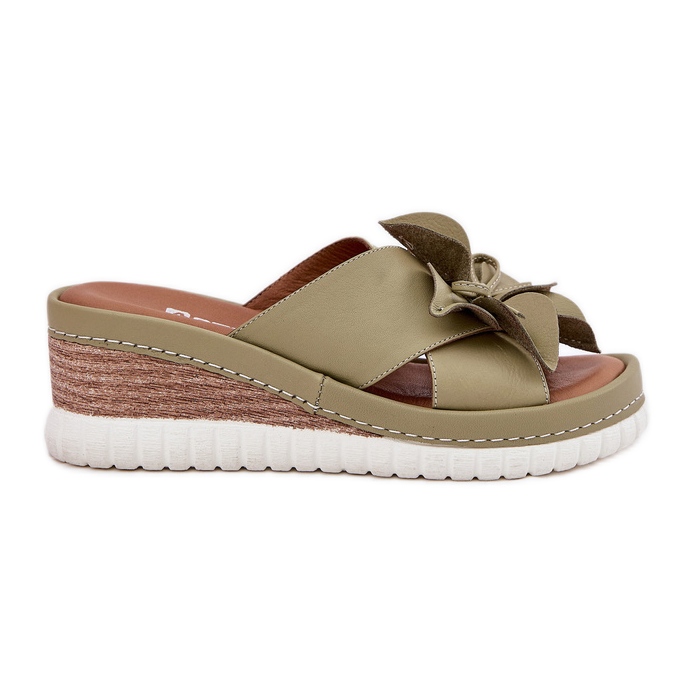 Detaljer: ARTIKER Kvinnors läderkilar med en dekorativ blommor Artikemer 52C0503 Green grön