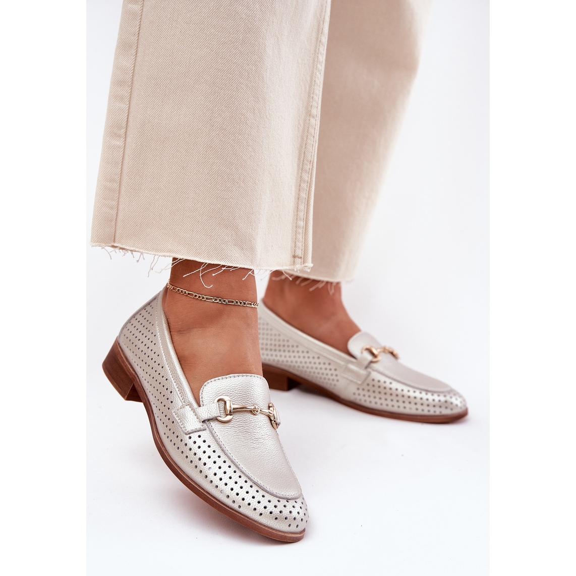 Detaljer: S.Barski Kvinnors läderloafers med plattklackad prydnad S. Barski LR51-594 Silver