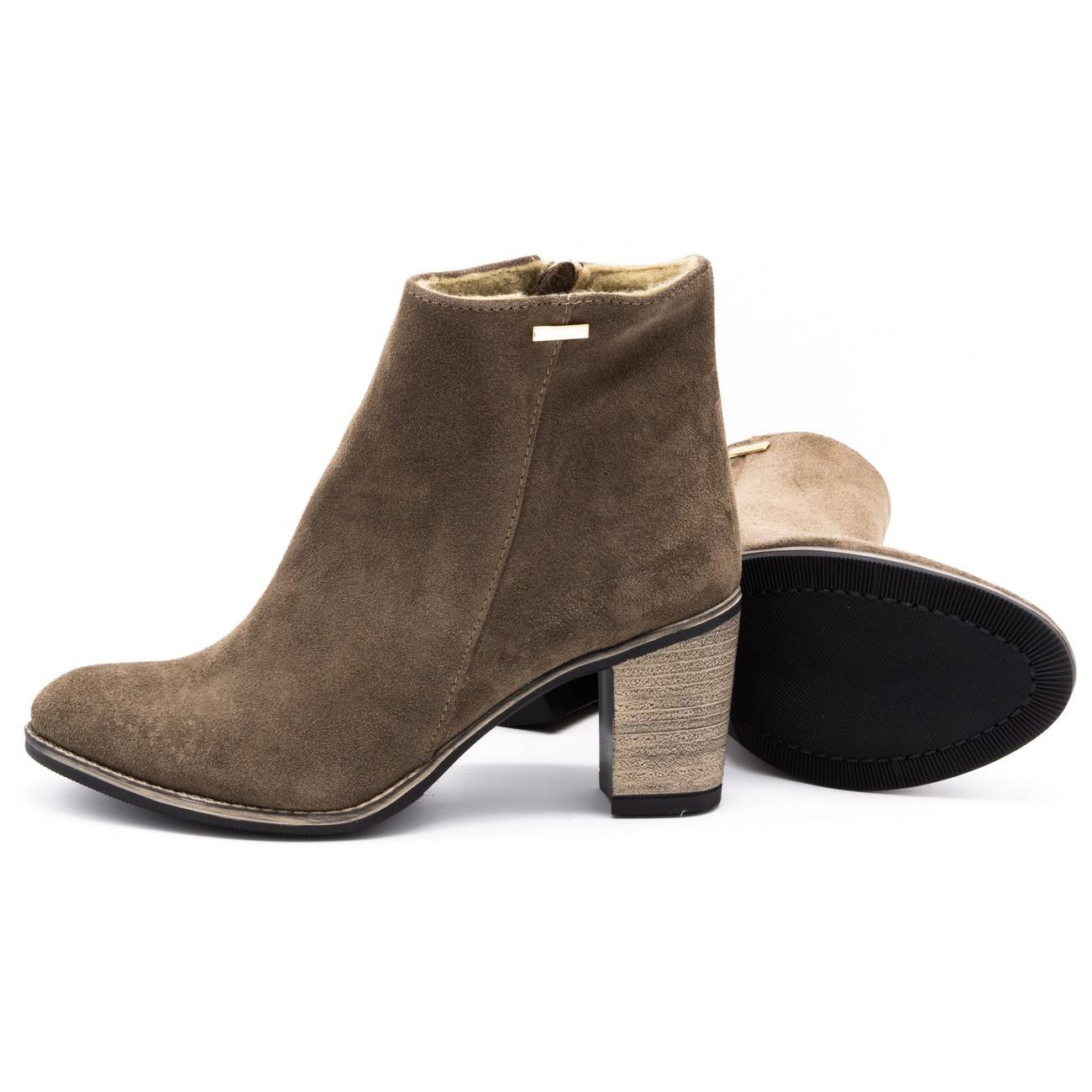 Olivier Women's High -Heeled Leather Boots - Sarah Model (DK.Beige) är en kombination av klassisk elegans och praktisk funktionalitet. Tillverkad för hand från nubuckläder (mocka), i en varm, jordnära nyans av brunt, kommer de perfekt att komplettera höst- och vinterstyliseringar - både för kjol och byxor. En stabil pelare med en höjd av 7,5 cm ger lätthet till figuren, och den tjockare sulan ger isolering från en sval mark. Interiören är något isolerad med en skorfilt fungerar i varierande väder.