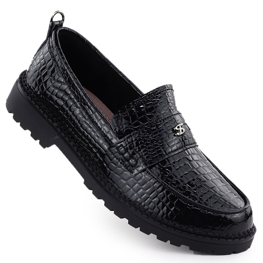 Detaljer: Kvinnors läderskor lackade loafers Kroko Black Filippo DP7409
