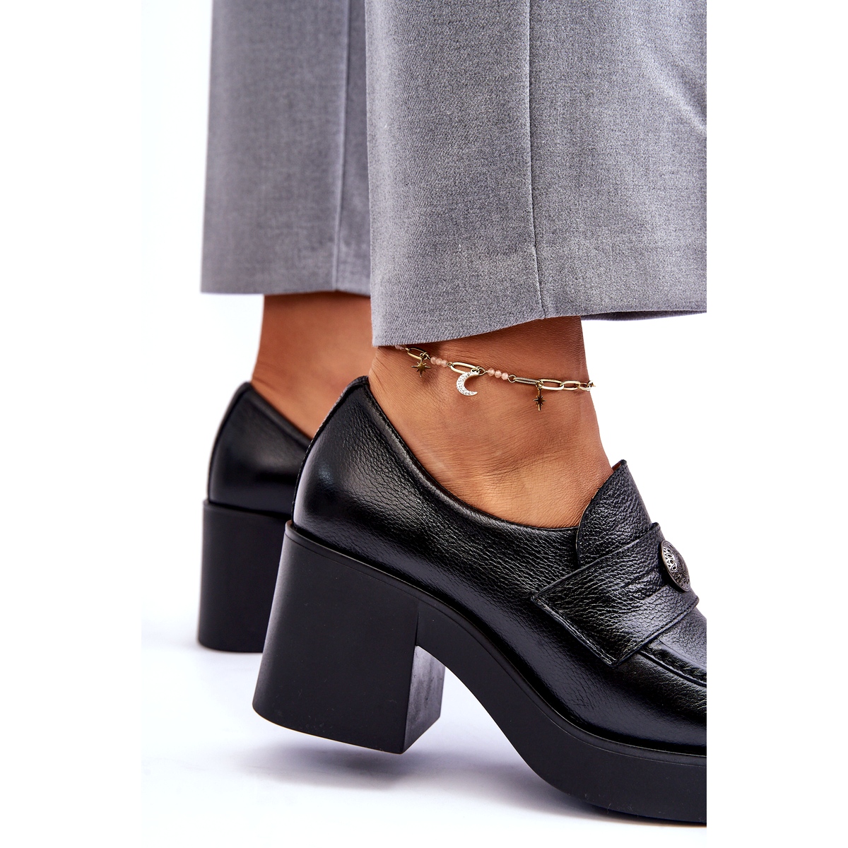 Dessa skor är ett perfekt komplement till alla kvinnors garderob - med sin minimalistiska design och en klassisk, rund näsa kommer säkert att locka uppmärksamhet åt varje tillfälle. En subtil dekor på bältet ger dem en unik karaktär.