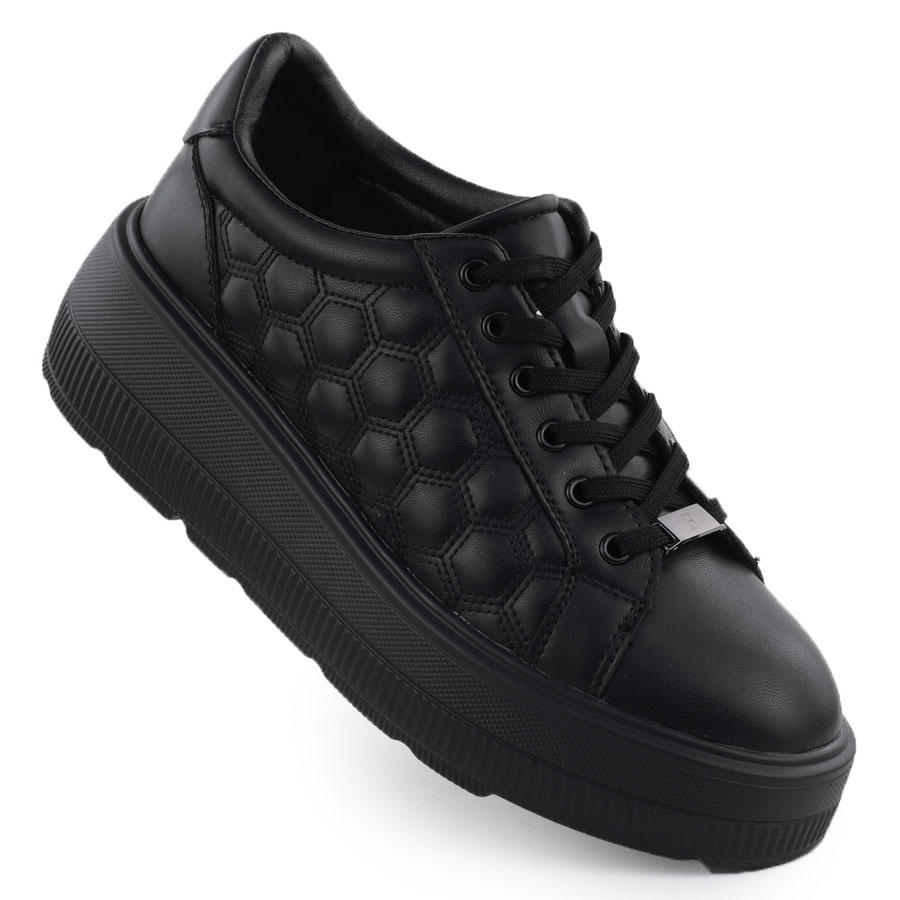 Filippo Kvinnors läderskor quiltade sneakers på plattformen Czarne Filippo DP7285 svart