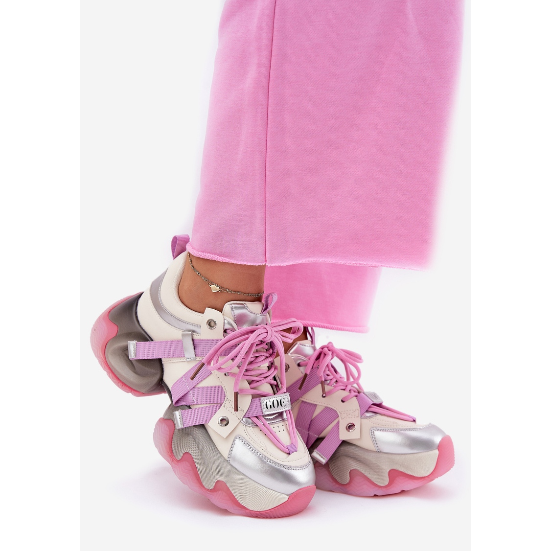 Detaljer: GOE Kvinnors lädersneakers på de massiva sulan rr2n4030 rosa