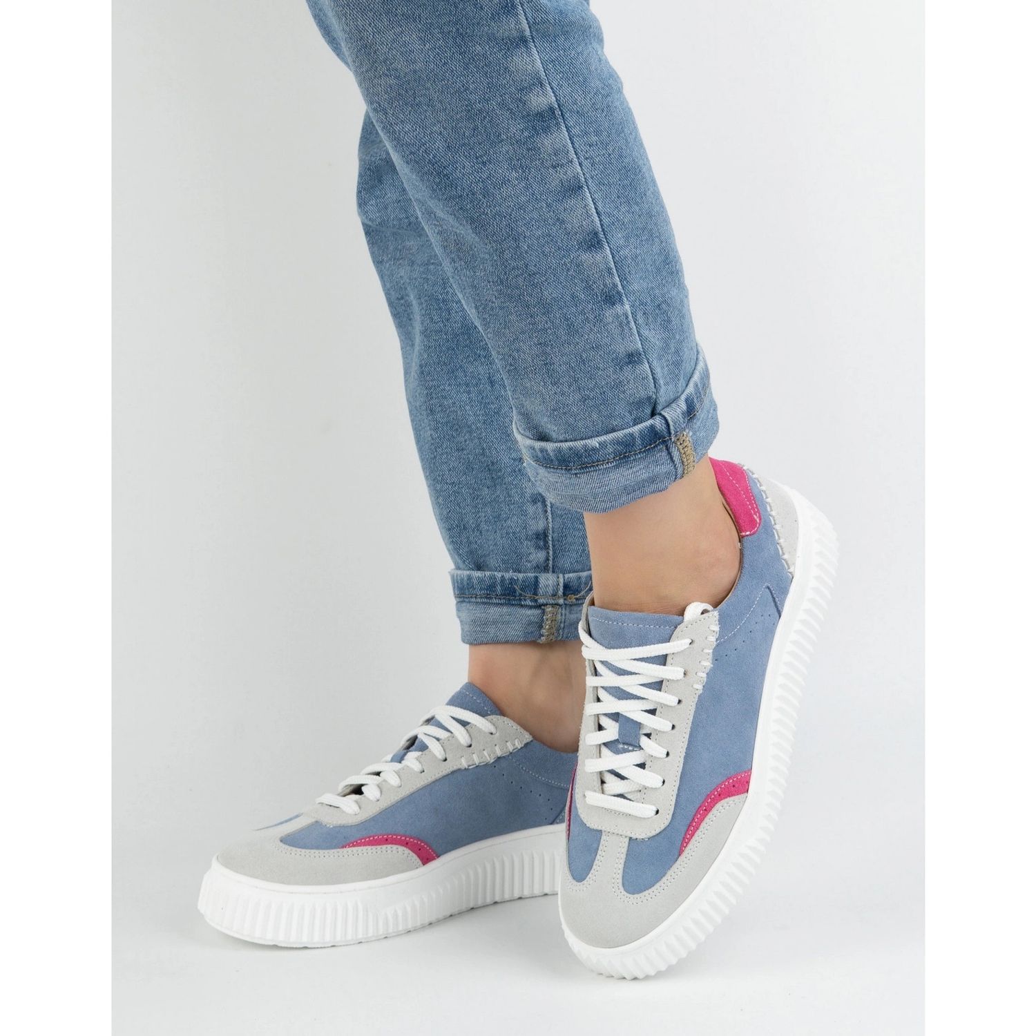 Tack vare den fasta, höga plattformen lägger dessa sneakers till figuren, och deras dynamiska linje gör dem till ett måste i varje modegarderob. Fashionabla blå färg kommer att göra att dina stiliseringar får friskhet och karaktär, perfekt passande både vardagliga och mer gratis stadsutseende.