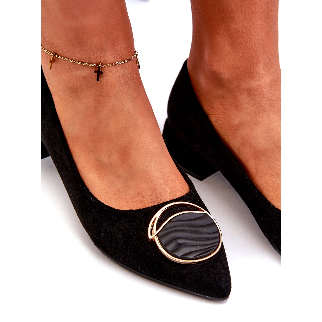 Den låga, stabila hälen med en höjd av 3 cm ger komfort, och näsorna i Spitz smälter optiskt figuren och lägger till sin klass och stil. Dekorationen placerad framför skon fångar ögat och ger pumparna en unik karaktär. Den mjuka, läderinsula tar hand om komfort, ger komfort även under en lång slitage.