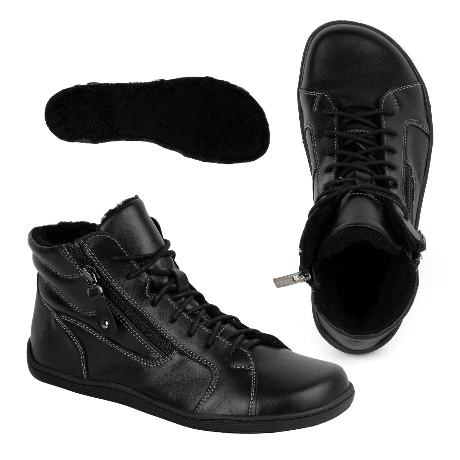 **Olivier Minimalist Barefoot 1261 vinterskor i läder - svarta**