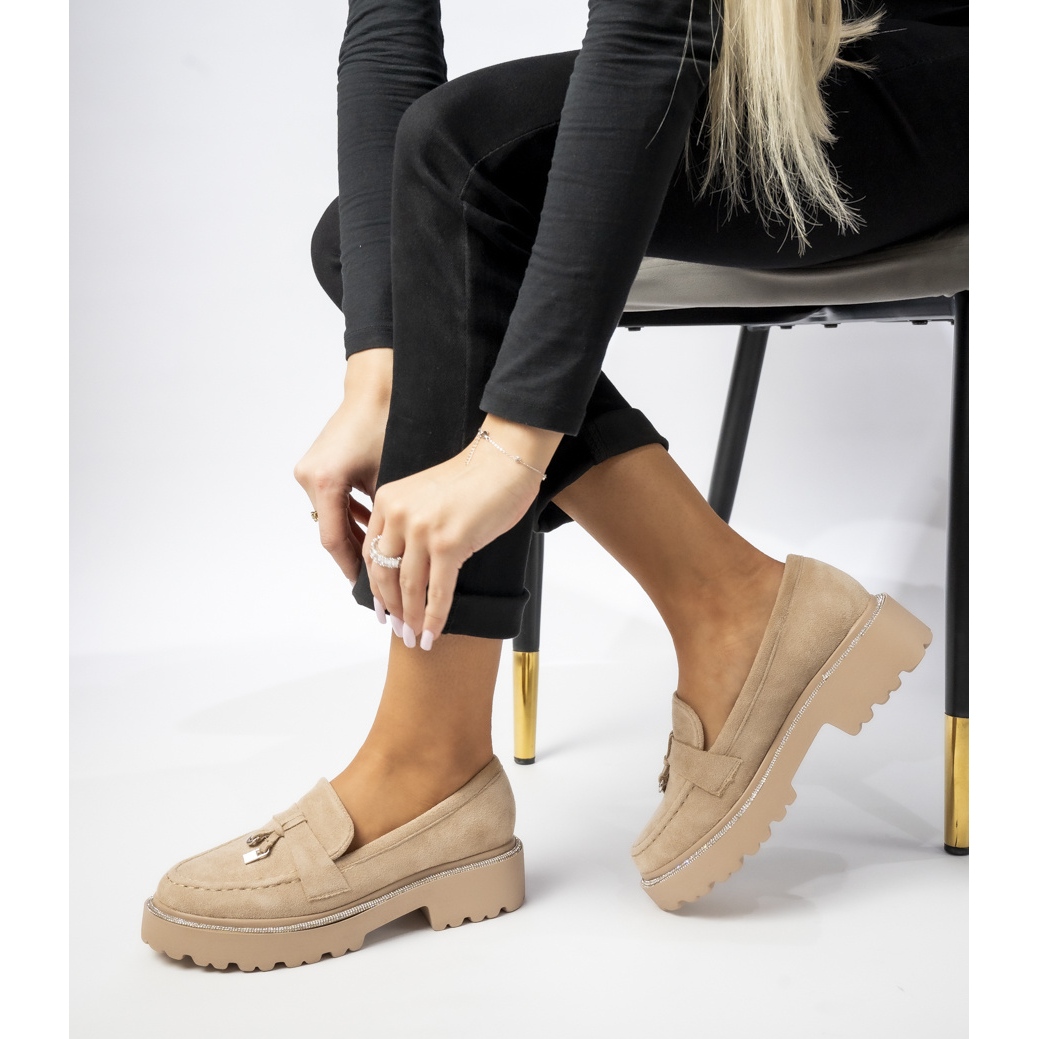 Loafers är tillverkat av högkvalitets -Eco Suede Leather och ger inte bara en perfekt passform för foten, utan också mjukhet, tack vare vilken till och med långvarig bärning blir ett nöje. En tjock, omskridande sula i beige färg är en garanti för stabilitet på olika ytor, vilket gör dem till det perfekta valet både dagligen och för speciella tillfällen.