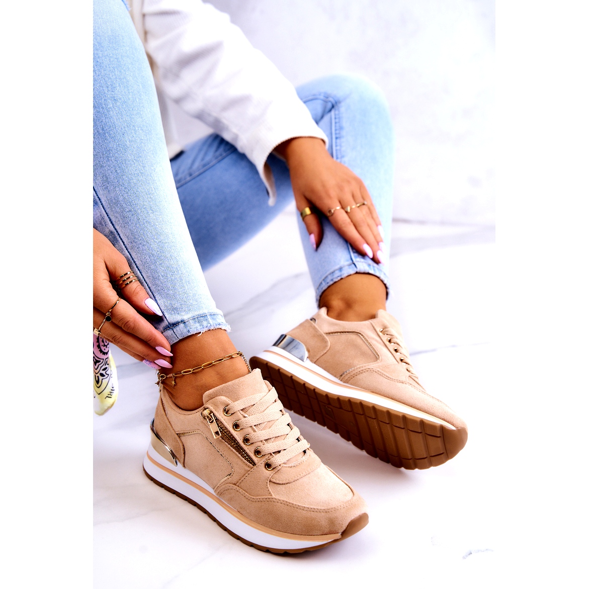 Detaljer: Kvinnors mocka sportskor på plattformen Dark Beige