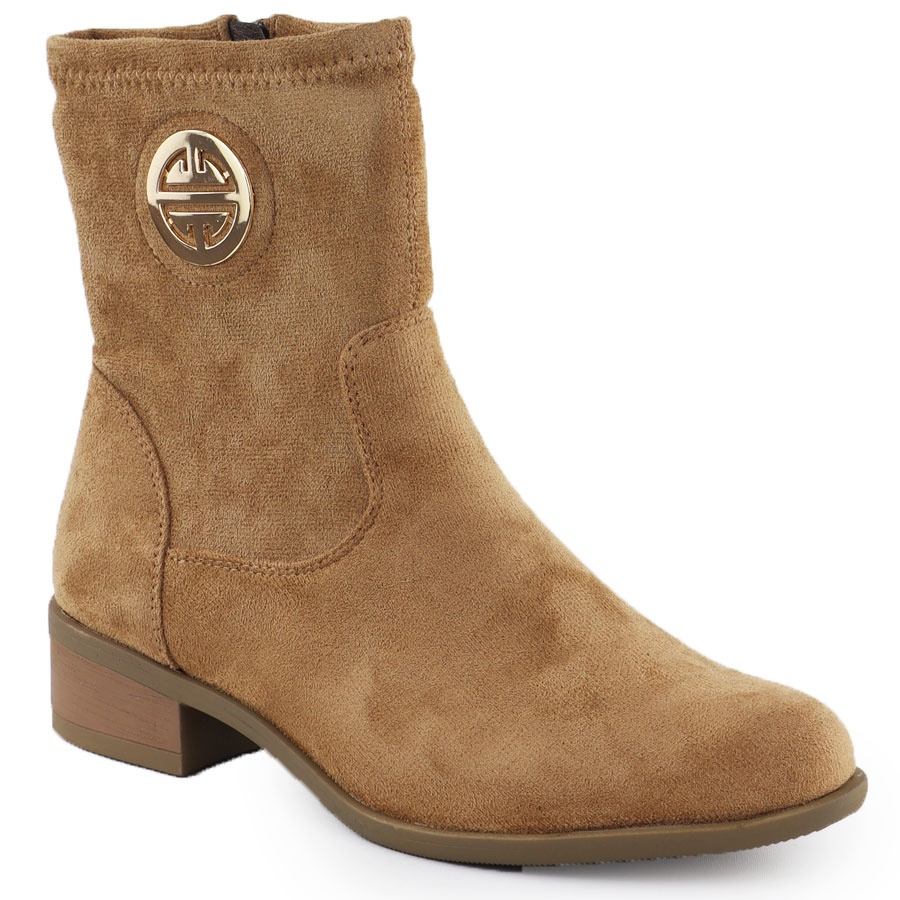Jezzi Kvinnors mocka stövlar med dekoration beige jezzi 198-28