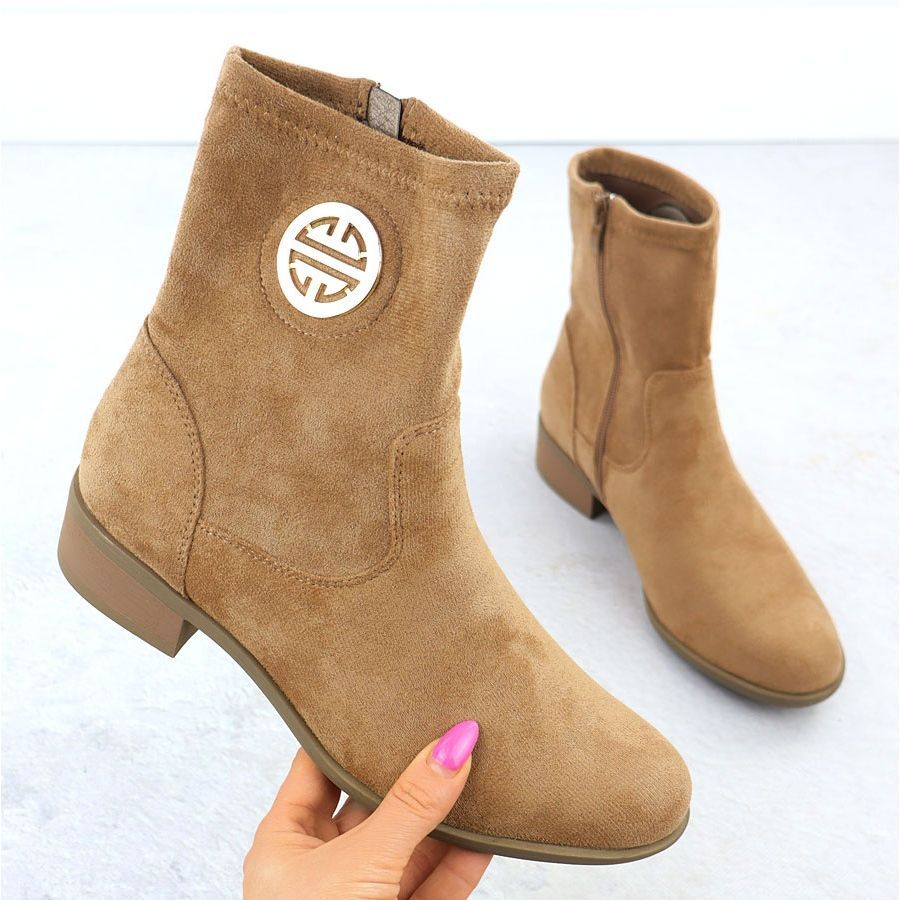 Detaljer: Kvinnors mocka stövlar med dekoration beige jezzi 198-28