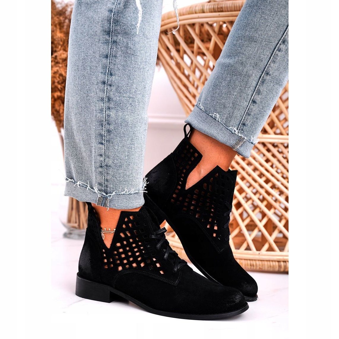 Upptäck unik stil och bekvämlighet att bära med kvinnors genombrutna stövlar i svart mocka Susannah från det polska märket Nicole. Dessa eleganta stövlar är omsorgsfullt gjorda av naturligt läder, vilket garanterar deras höga kvalitet och hållbarhet. Den genombrutna designen tillför lätthet och fräschör, vilket gör dem till ett perfekt komplement till många olika stilar - från avslappnad till mer elegant.