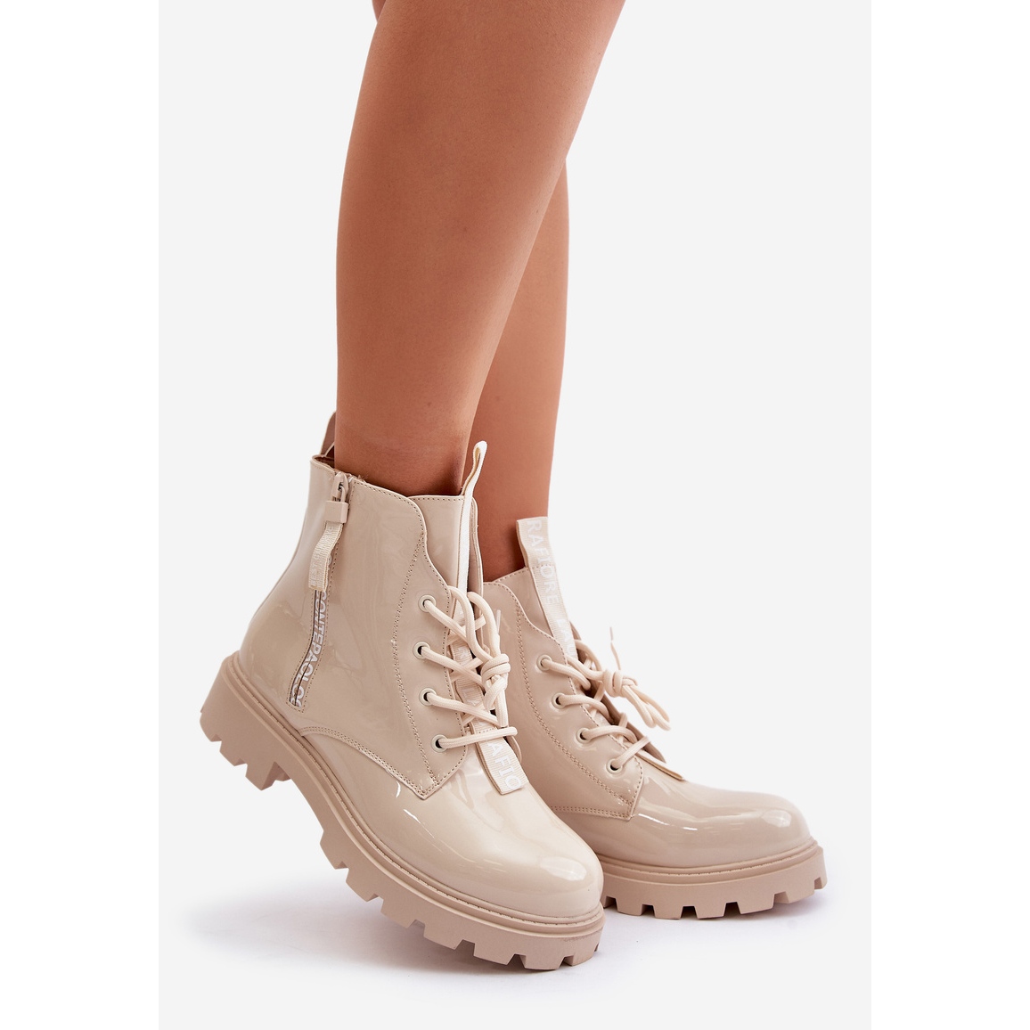 Detaljer: Kvinnors patentarbetarstövlar, isolerade, med beige inskriptioner, Zinfreya