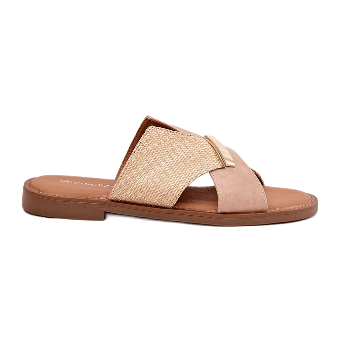 Kvinnors Vinceza 17385 Flat -hankade tofflor i Beige är det perfekta valet för sommardagar och kombinerar elegans med komfort. Tillverkade av högkvalitativa ekoläder ger de inte bara ett snyggt utseende utan också komfort vid varje steg. Tack vare införandet är att sätta på och ta bort klaffarna extremt enkelt, och en platt häl med en höjd av 1,5 cm garanterar stabilitet och komfort att bära hela dagen.