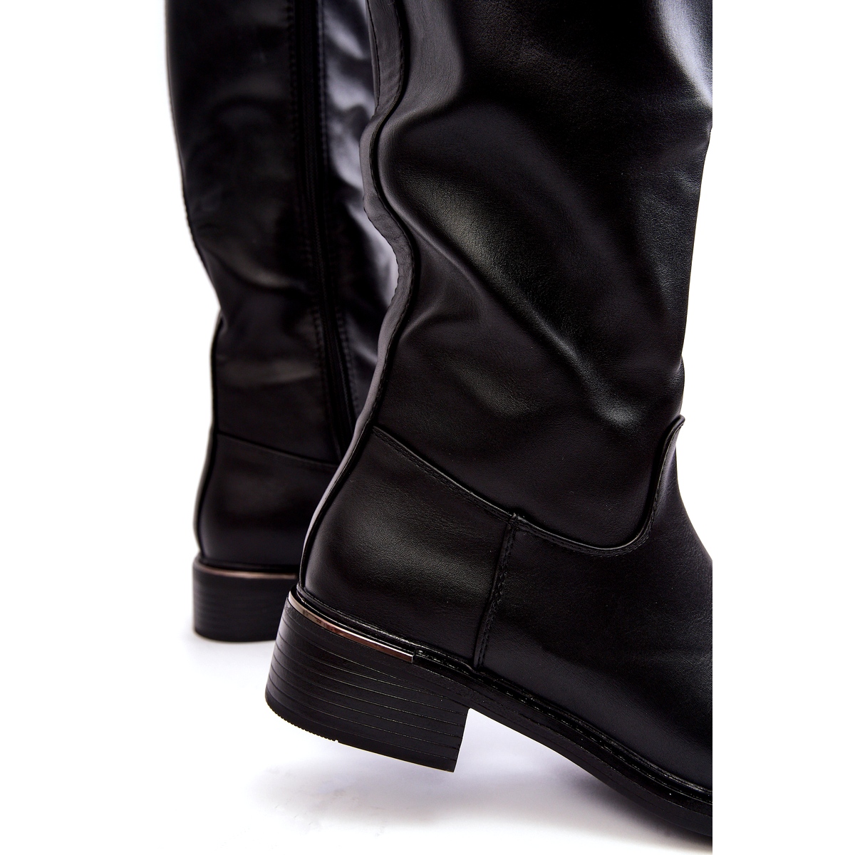 Detaljer: Diamantique Kvinnors platthöjda stövlar framför knä svart knä
