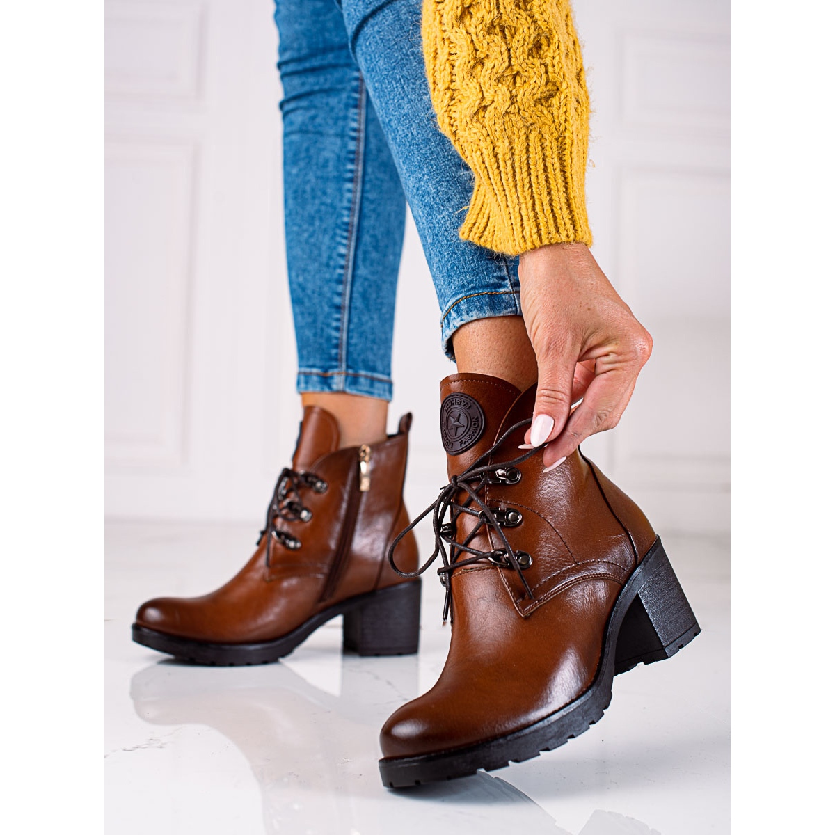 Upptäck en unik modell av dambaggies från den välkända tillverkaren W. Potocki, som kommer att kombinera komfort, stil och funktionalitet. Dessa bruna högklackade ankelboots passar perfekt in i en avslappnad och rockig look, perfekt för både vardagsbruk och mer krävande tillfällen.