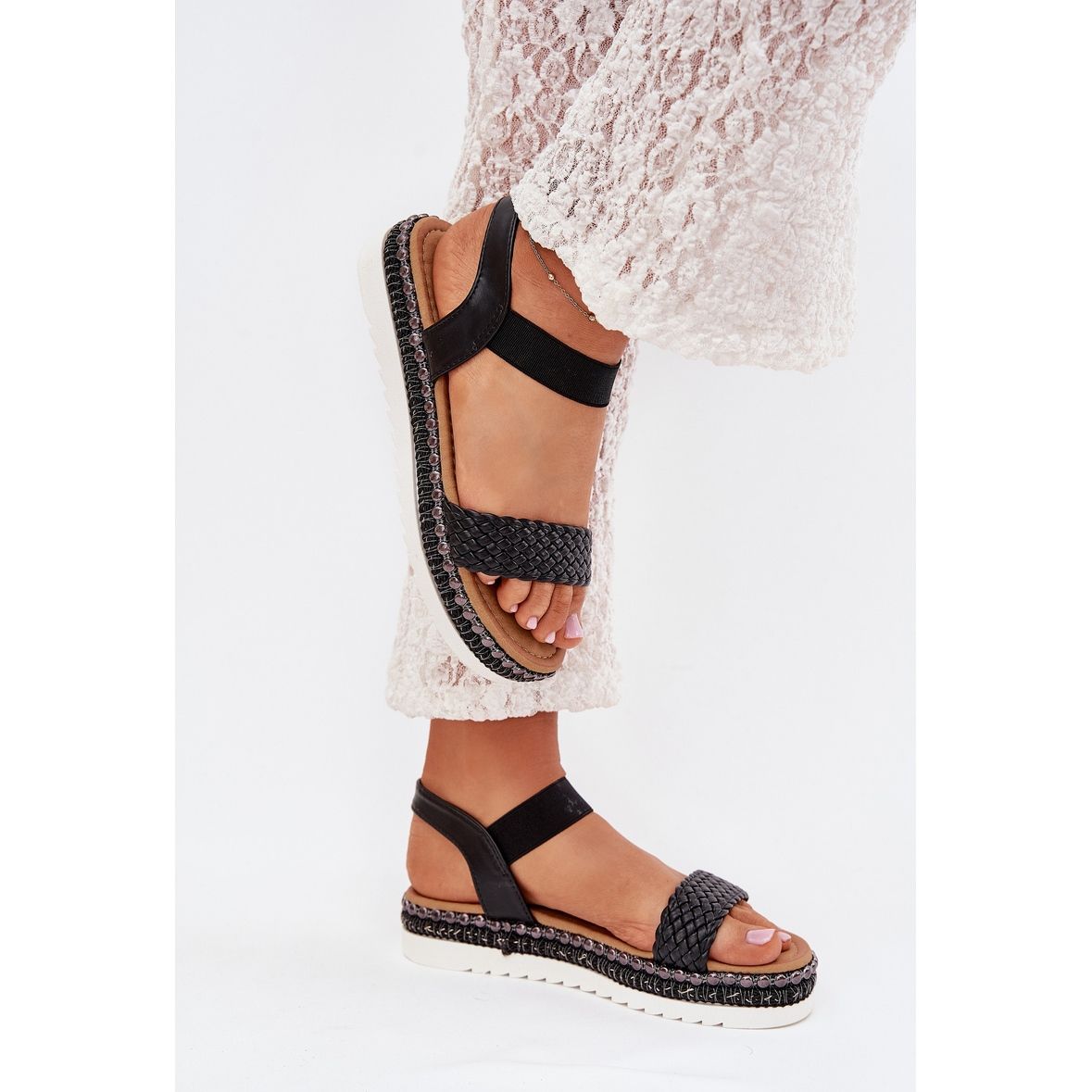Detaljer: Boto Kvinnors sandaler med fläta på den dekorerade plattformen Black Velara svart