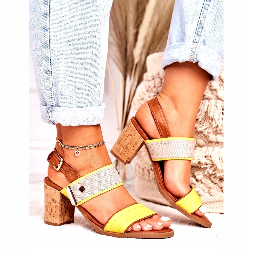 Vi presenterar bekväma och snygga Jezzi-sandaler på en korkhäl 20SD35-1826 i en fashionabel nyans av gul. Dessa damskor är det perfekta valet för kvinnor som letar efter en kombination av elegans och komfort. Tillverkade av högkvalitativt eko-läder, de garanterar hållbarhet och estetiskt utseende.