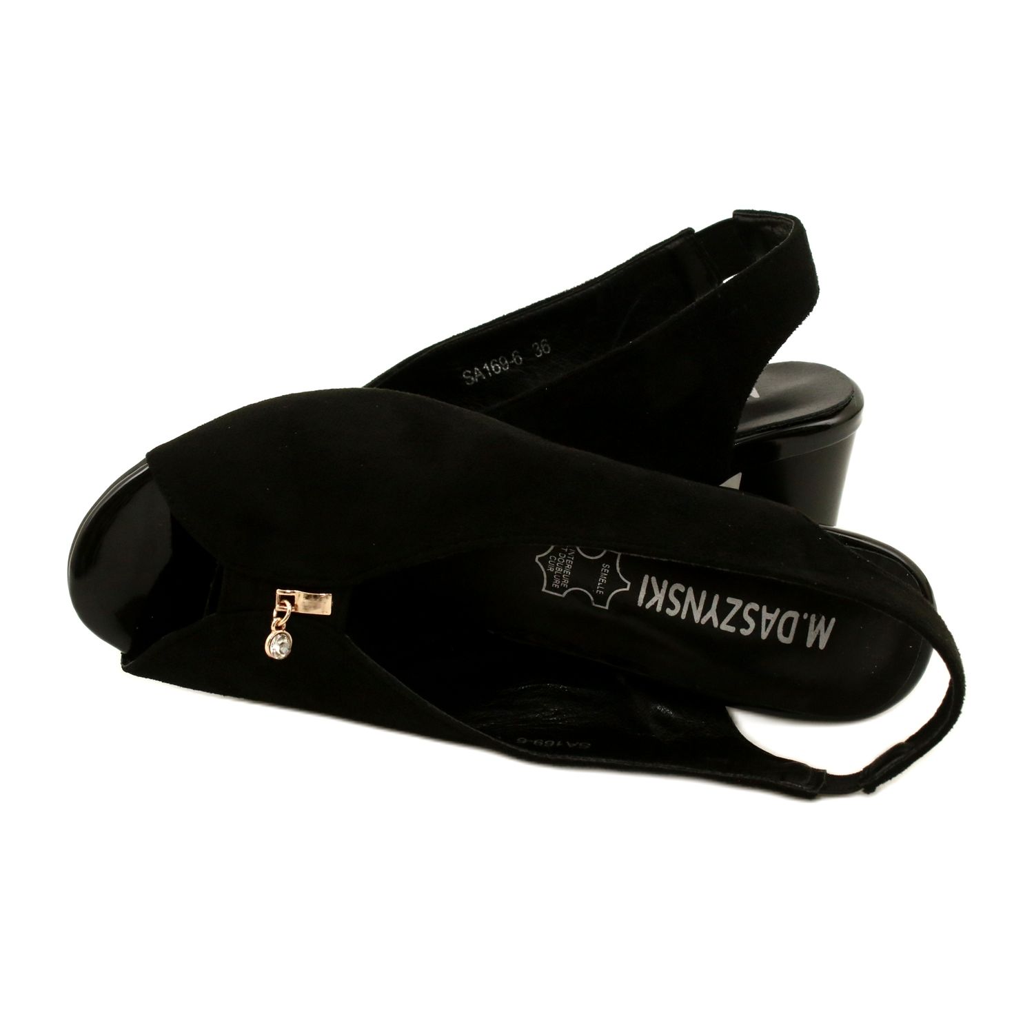Eleganta och universella-Daszyński SA169-6 kvinnors sandaler i svarta är ett bra val för kvinnor som värderar klassiker med en antydan till stil. Tillverkad av högkvalitativt ekologiskt läder med mockstruktur och med en läderinsats kombinerar de en elegant utseende med att bära komfort. Subtila dekorativa strass tillför glans utan att störa skorna.