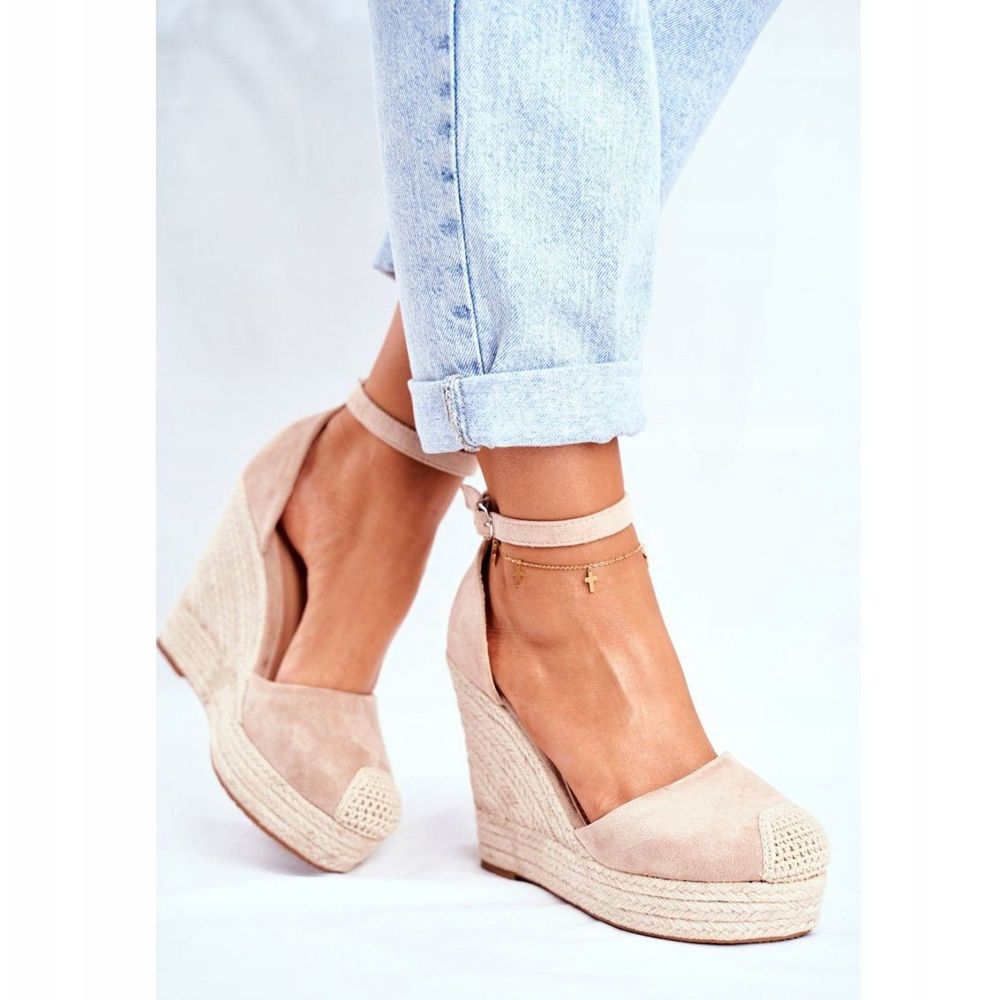 Detaljer: MSMG Kvinnors sandaler på en kil Linne Beige Avokado