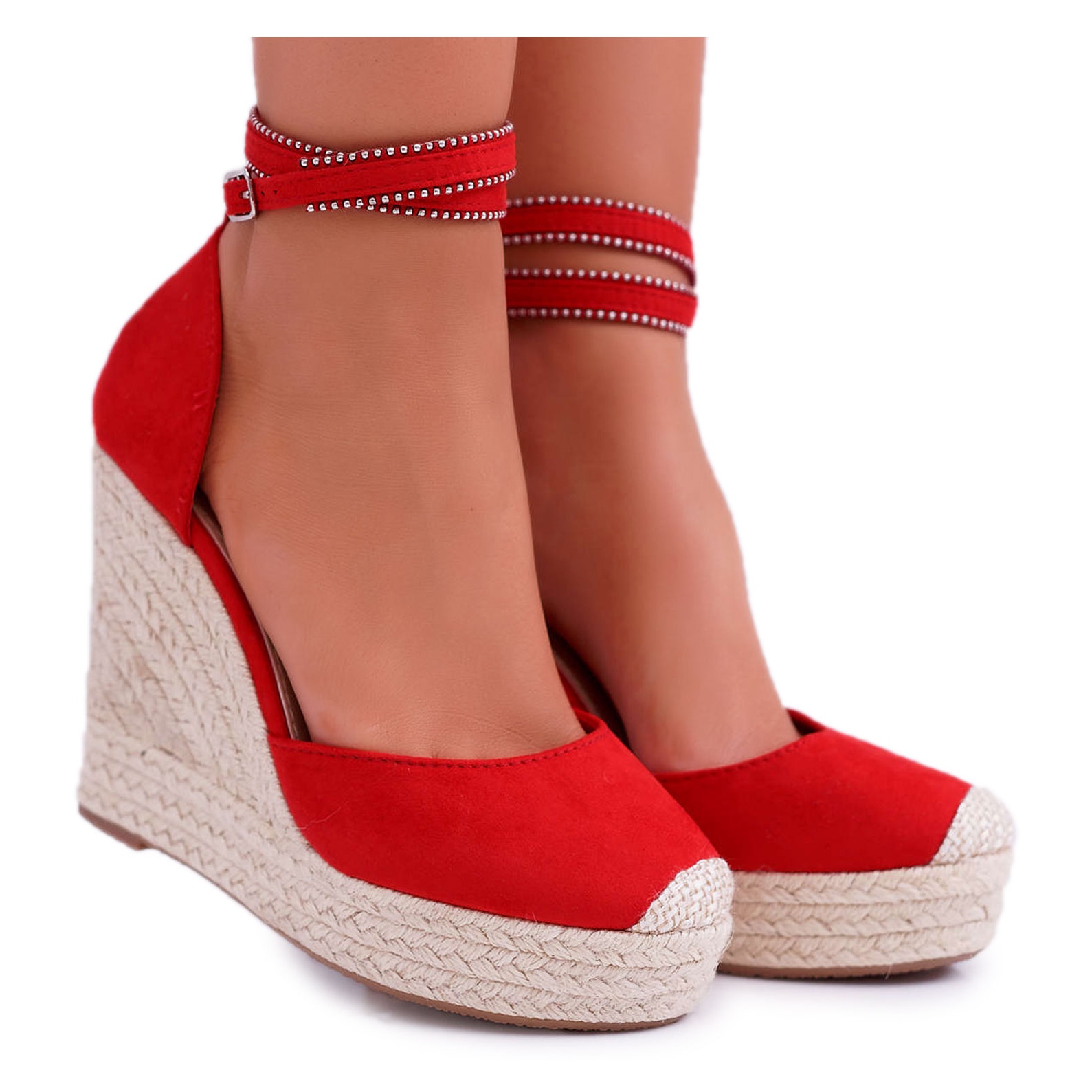 Detaljer: FB2 Kvinnors sandaler på en kil Linne Röd Canterola