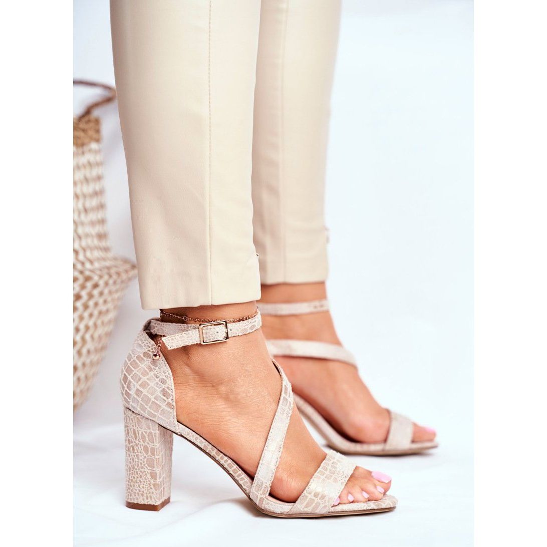 Bekväma och snygga sandaler är varje kvinnas dröm! Sergio Leone damsandaler på hög klack i en nyans av beige skala är det perfekta valet för dig som vill kombinera komfort med elegans. En stabil, låg stolpe med en höjd på 8,5 cm ger dig självförtroende i dina steg och ett unikt utseende, oavsett tillfälle.