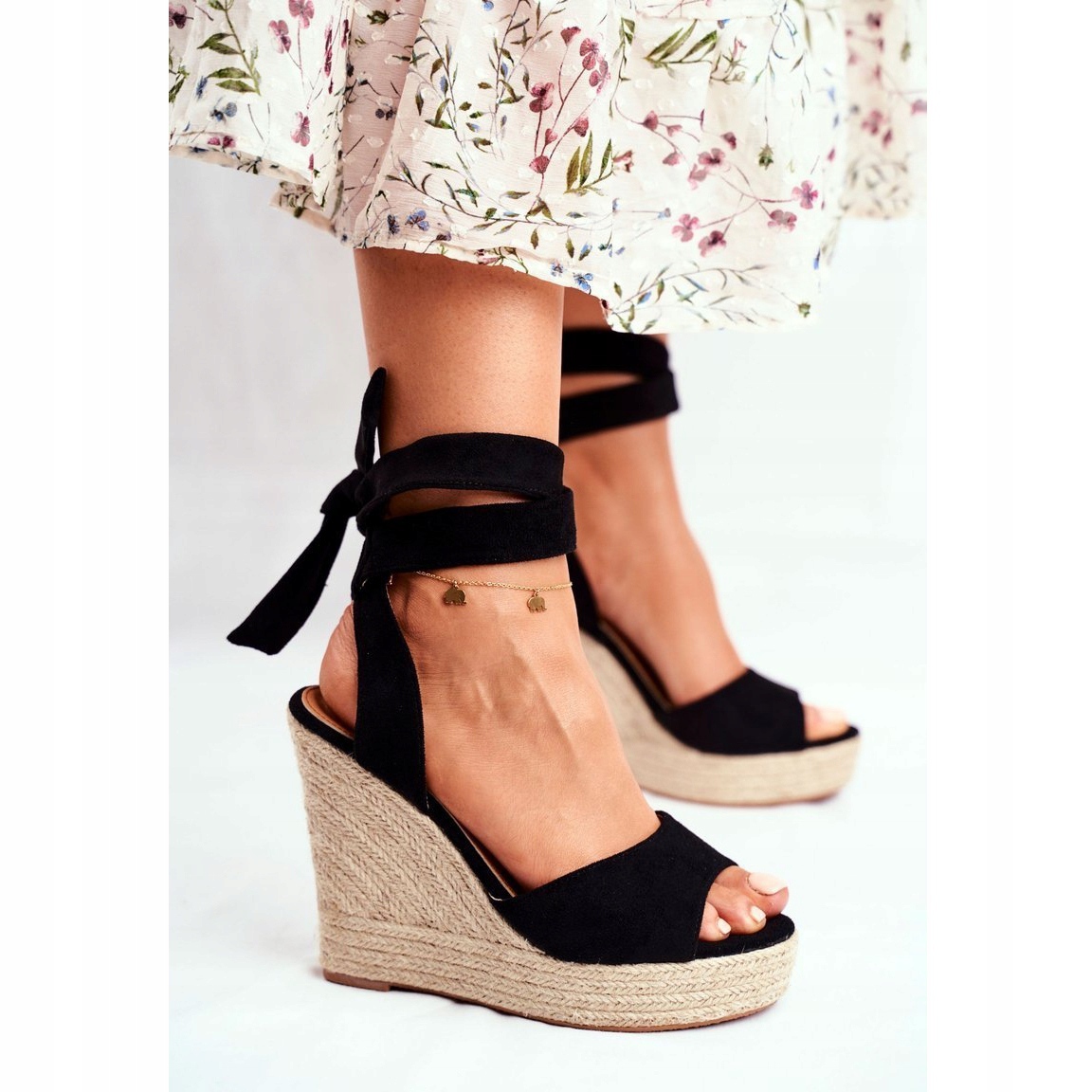 Klädd sandaler för damer Knyt Black Belleza från SEA-tillverkaren är det perfekta valet för kvinnor som vill lägga till några centimeters höjd samtidigt som de njuter av komfort och elegans. Dessa unika kilskor, med en klackhöjd på 12,5 cm och en plattform på 3,5 cm, kommer att lyfta vilken figur som helst och lägga till smalhet och klass.