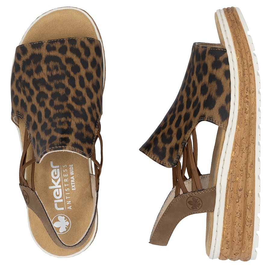 Möt de extremt eleganta och bekväma kvinnosandalerna på plattformen med leopardtryck från det berömda Rieker-varumärket, Model 62741-90 i Beige. Dessa lätta och flexibla skor är det perfekta valet för kvinnor som värderar komfort och fashionabla utseende.