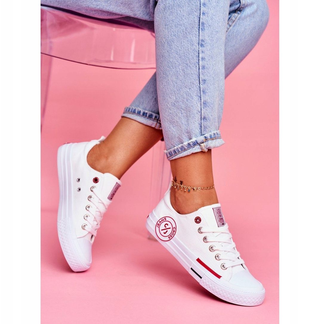 Cross Jeans är ett märke som fokuserar på mode och komfort, varför dessa sneakers är ett utmärkt val för varje aktiv kvinna. Vänta inte längre - välj Cross Jeans-sneakers för kvinnor och lägg till lite fräschör till din look! Innan du gör ett köp, var uppmärksam på storlekstabellen för att hitta den perfekta storleken för dig. Tillverkarens originalförpackning i form av en kartong gör dem till en perfekt present.