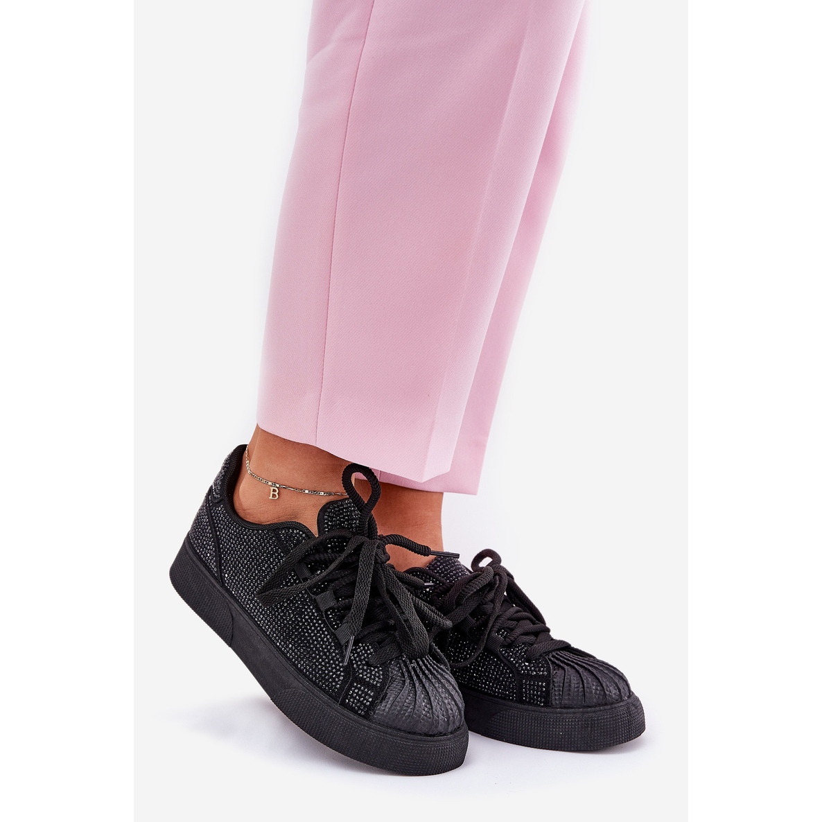 Detaljer: Kvinnors sneakers med dekoration på plattformen svart