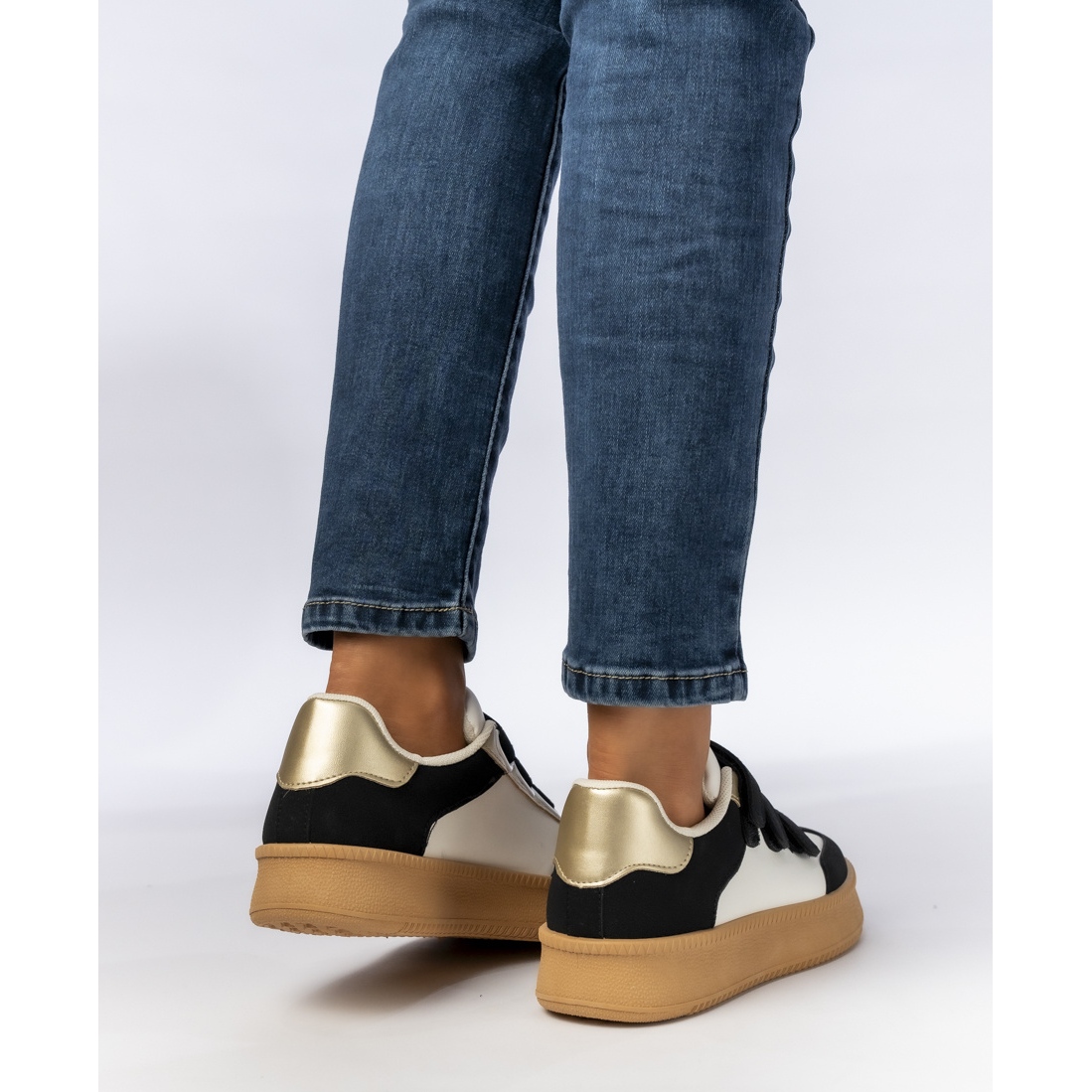 Detaljer: Kvinnors sneakers med metalliska svartvita skär