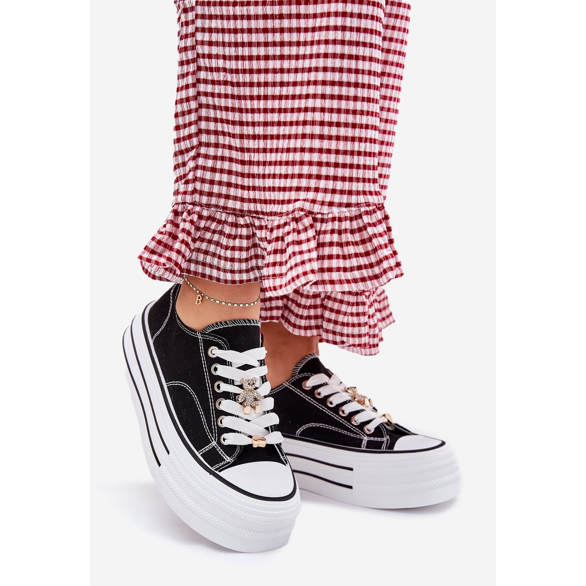 Detaljer: Kvinnors sneakers på plattformen med Golden Pins Black svart