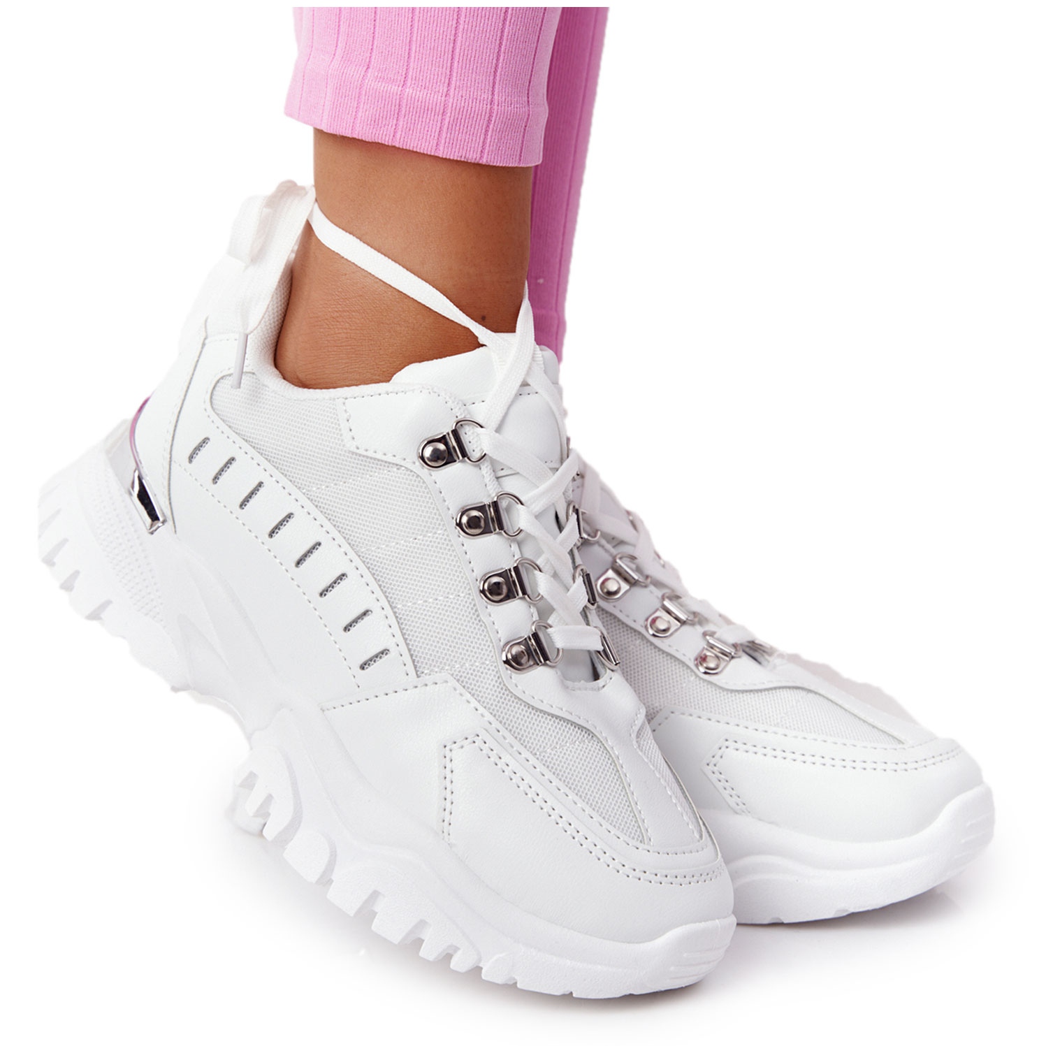 Grunden för det attraktiva utseendet på dessa sneakers är deras väldesignade plattform. 5 cm hög, den lyfter inte bara stilfullt din figur utan ger också oöverträffad komfort när du går. Tack vare sulmaterialet, som är syntetiskt, säkerställs också tillräcklig dämpning och hållbarhet.