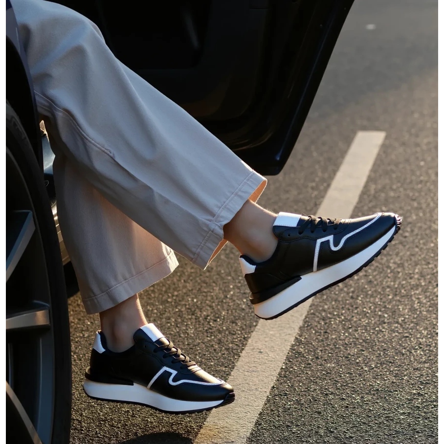 Upptäck våra kvinnors sneakers Velox Black, som är en perfekt kombination av stil och komfort. Deras dynamiska design i klassisk svart, med kontrasterande vita accenter, gör dem fashionabla och universella. Dessa sneakers är tillverkade av högkvalitativa ekologiska läder och tyger och erbjuder inte bara ett attraktivt utseende utan också hållbarhet.