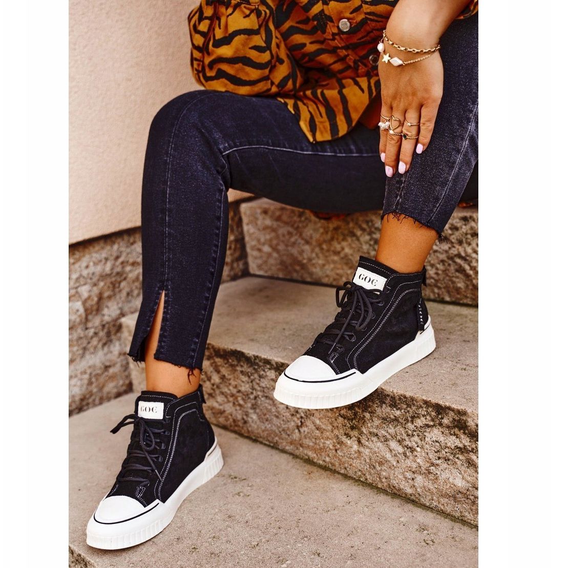 Här är en kollektion av de senaste GOE-sportskorna i läder för kvinnor i elegant svart färg GG2N3062! Dessa unika skor kombinerar de senaste modetrenderna med oöverträffad kvalitet på utförande. Den övre delen av högkvalitativt naturläder säkerställer komfort och samtidigt elegant utseende. Innersulan gjord av ekologiskt läder säkerställer bekvämt bärande hela dagen.