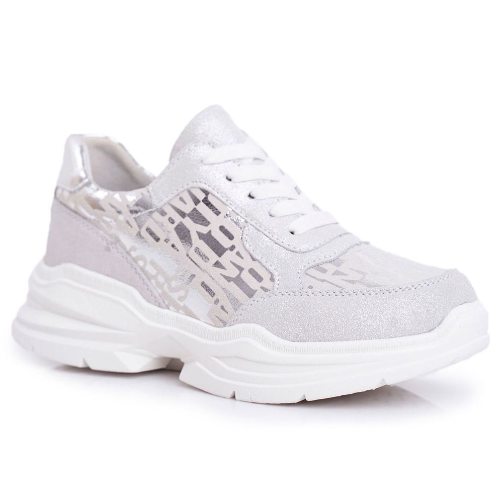 Detaljer: S.Barski Kvinnors sportskor Läder Silver Sneakers Palm Bay grå