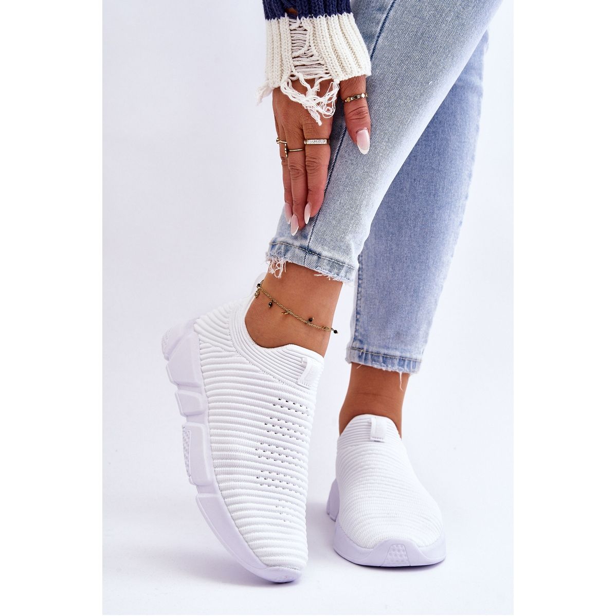 Upptäck komfort och stil med damsportslip-on skor Big Star DD274460 i en elegant vit färg. Det är ett idealiskt val för kvinnor som värdesätter kombinationen av moderiktig design och vardagskomfort.