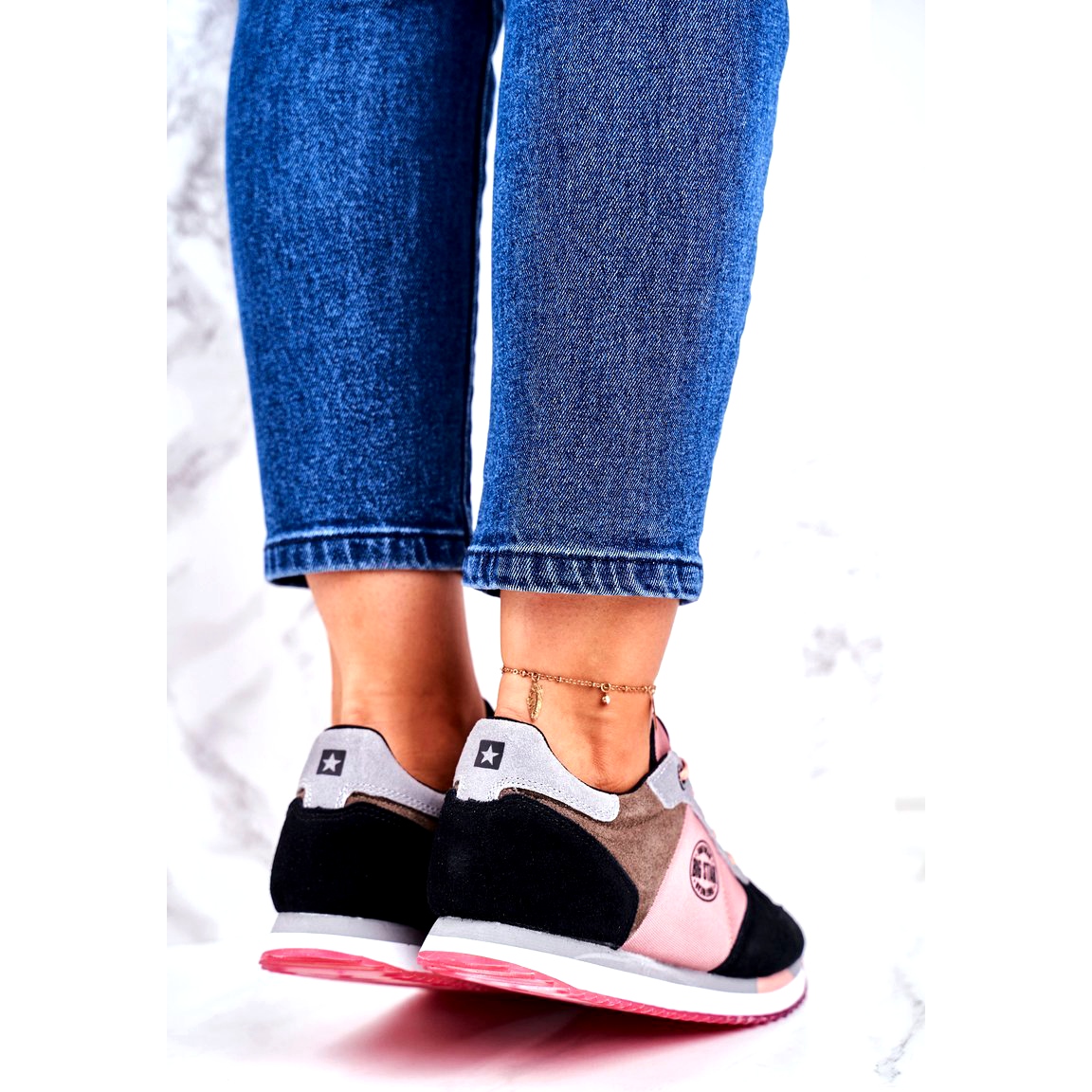 Detaljer: Kvinnors sportskor Sneakers Big Star GG274458 svart kaki rosa grå