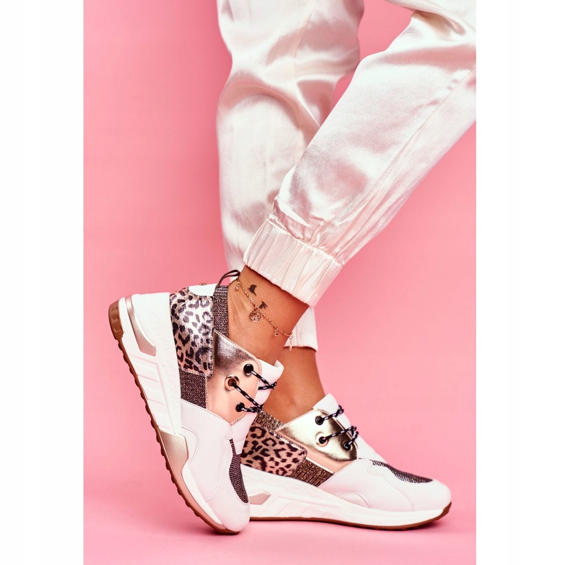 Vi presenterar för dig den senaste modellen av sportskor från märket Moow - sneakers i vita och guldfärger som säkerligen kommer att fånga ögonen på varje fashionabel kvinna! Dessa helt galna skor kombinerar unik design och extraordinär komfort, perfekta för vardagsstyling och aktiviteter.