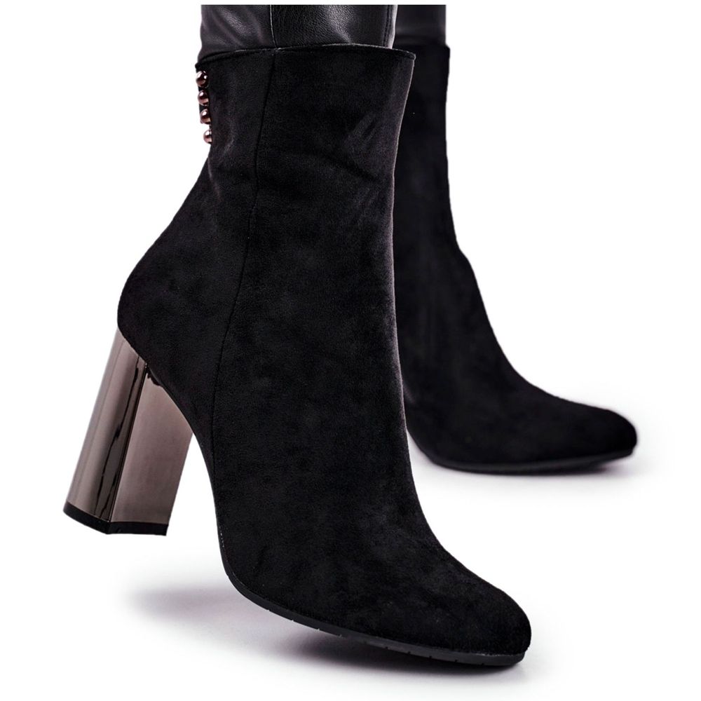 Upptäck ett nytt ansikte av elegans med våra svarta högklackade ankelboots från varumärket Trens! Dessa ankelboots är gjorda av behaglig eko-mocka och kombinerar stil och komfort, perfekt för både vardagsbruk och speciella tillfällen.
